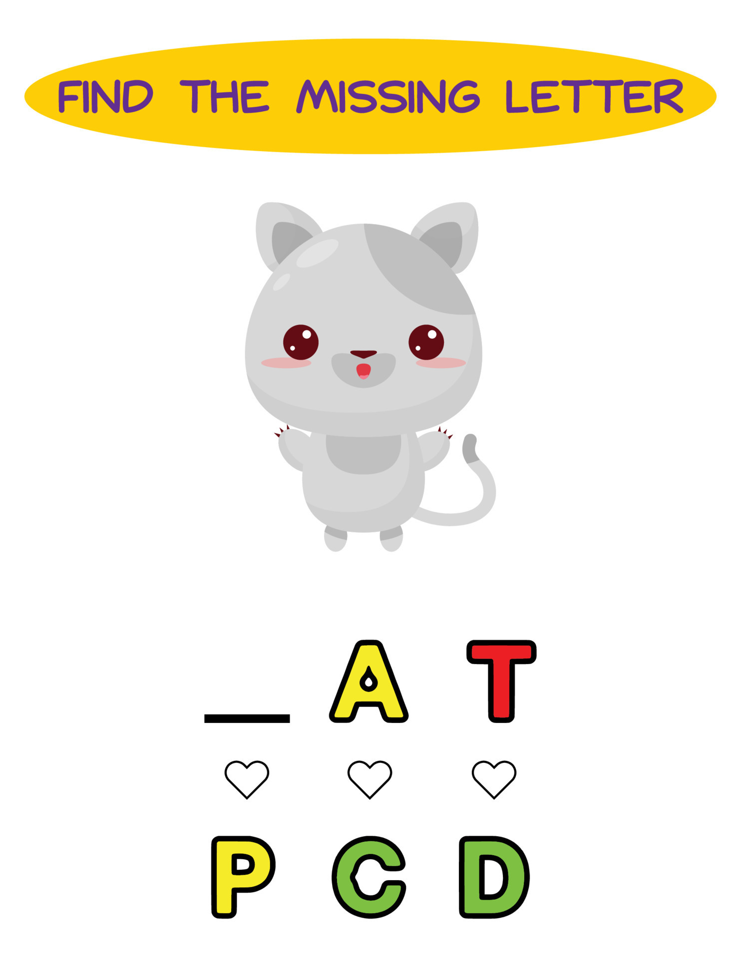 Find Missing Letter Kawaii Cat Educational Spelling Game For Kids Education Puzzle For Children Find Missing Letter Of Cute Cartoon Cat Printable Bug Worksheet 12901213 Vector Art At Vecteezy